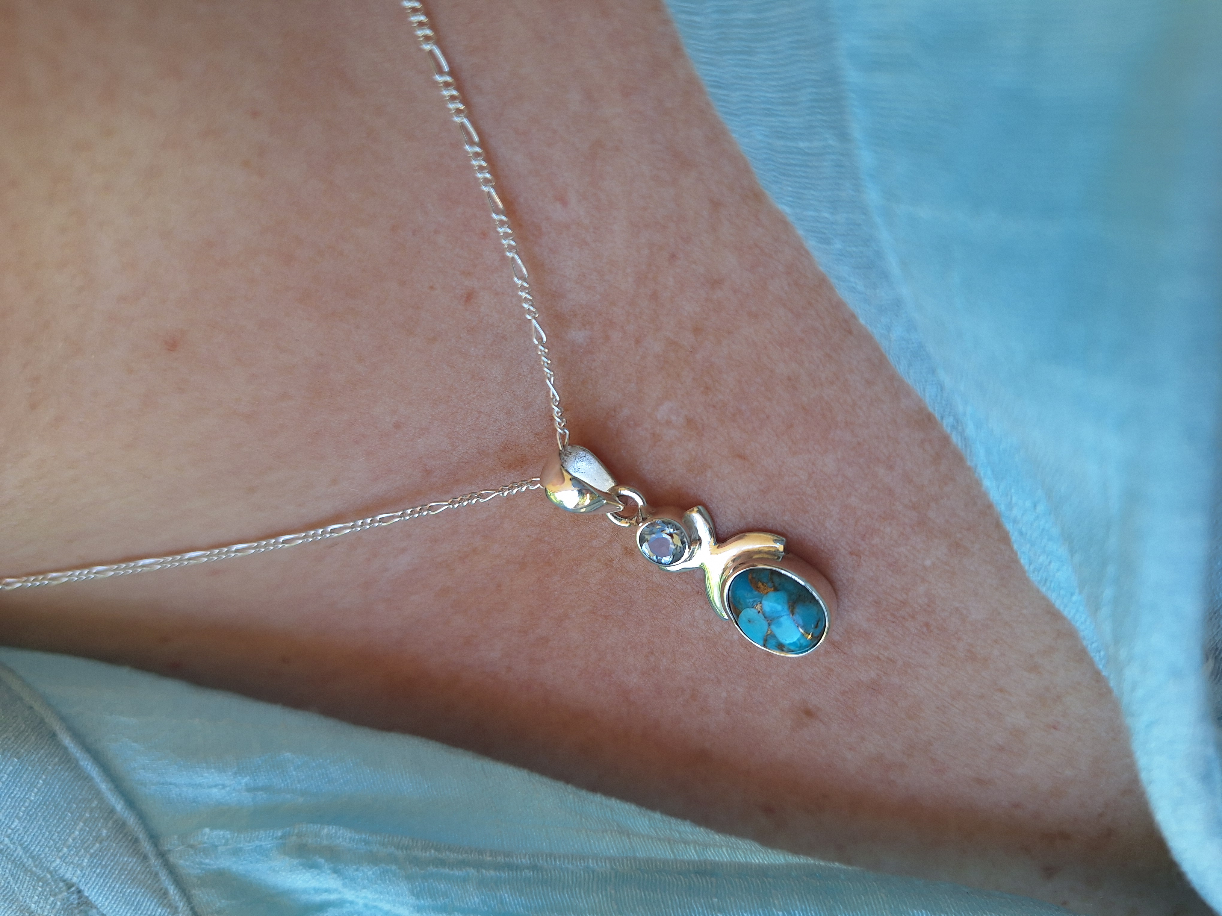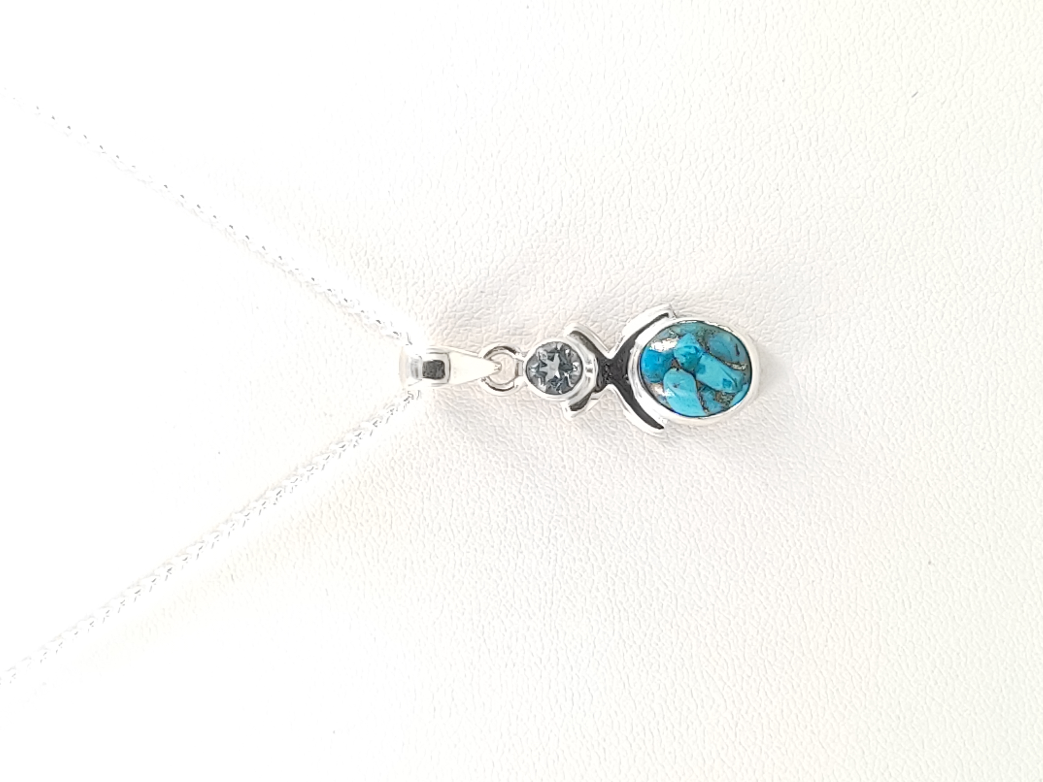 DIJE TURQUESA OVAL Y TOPACIO REDONDO