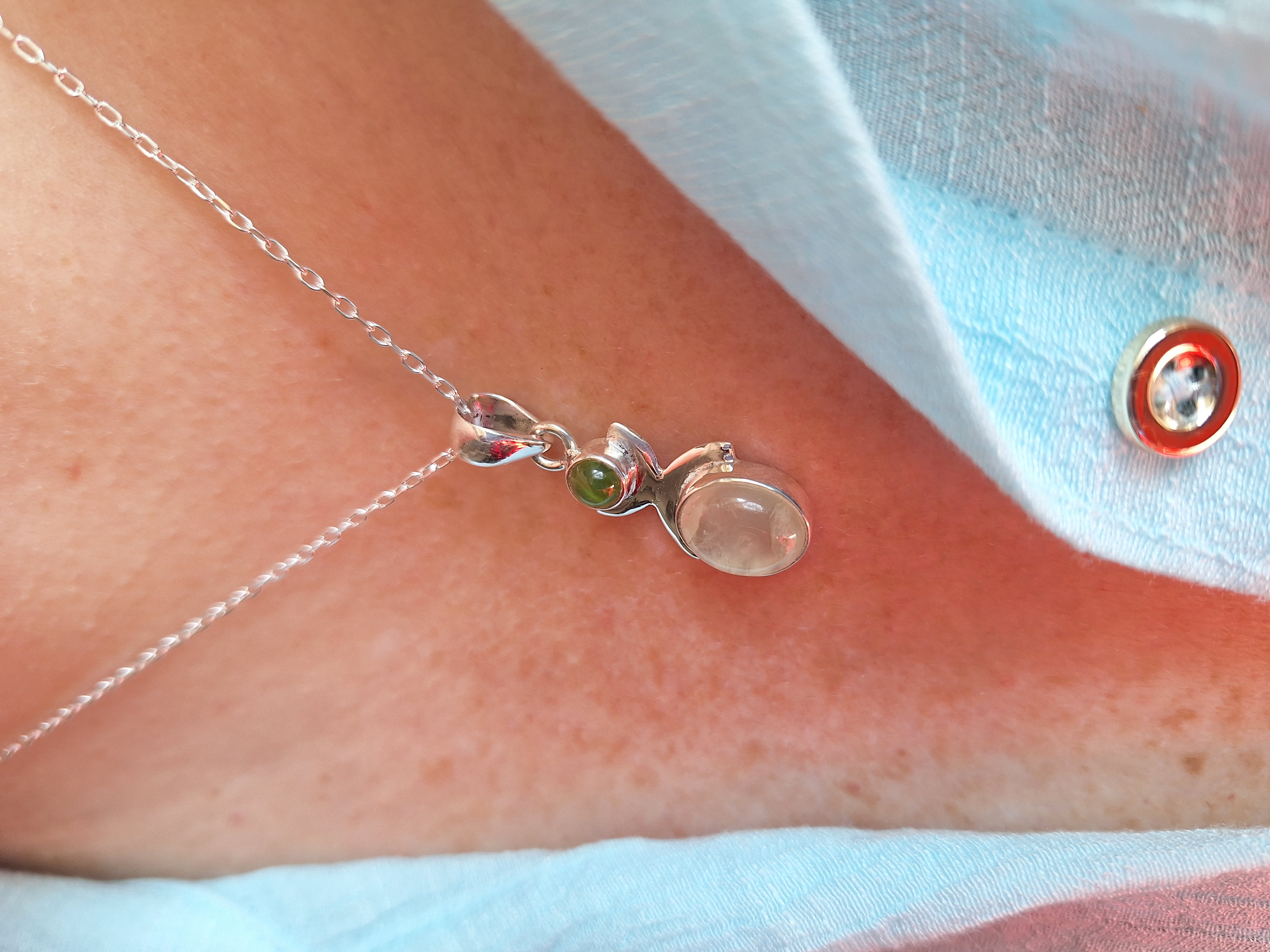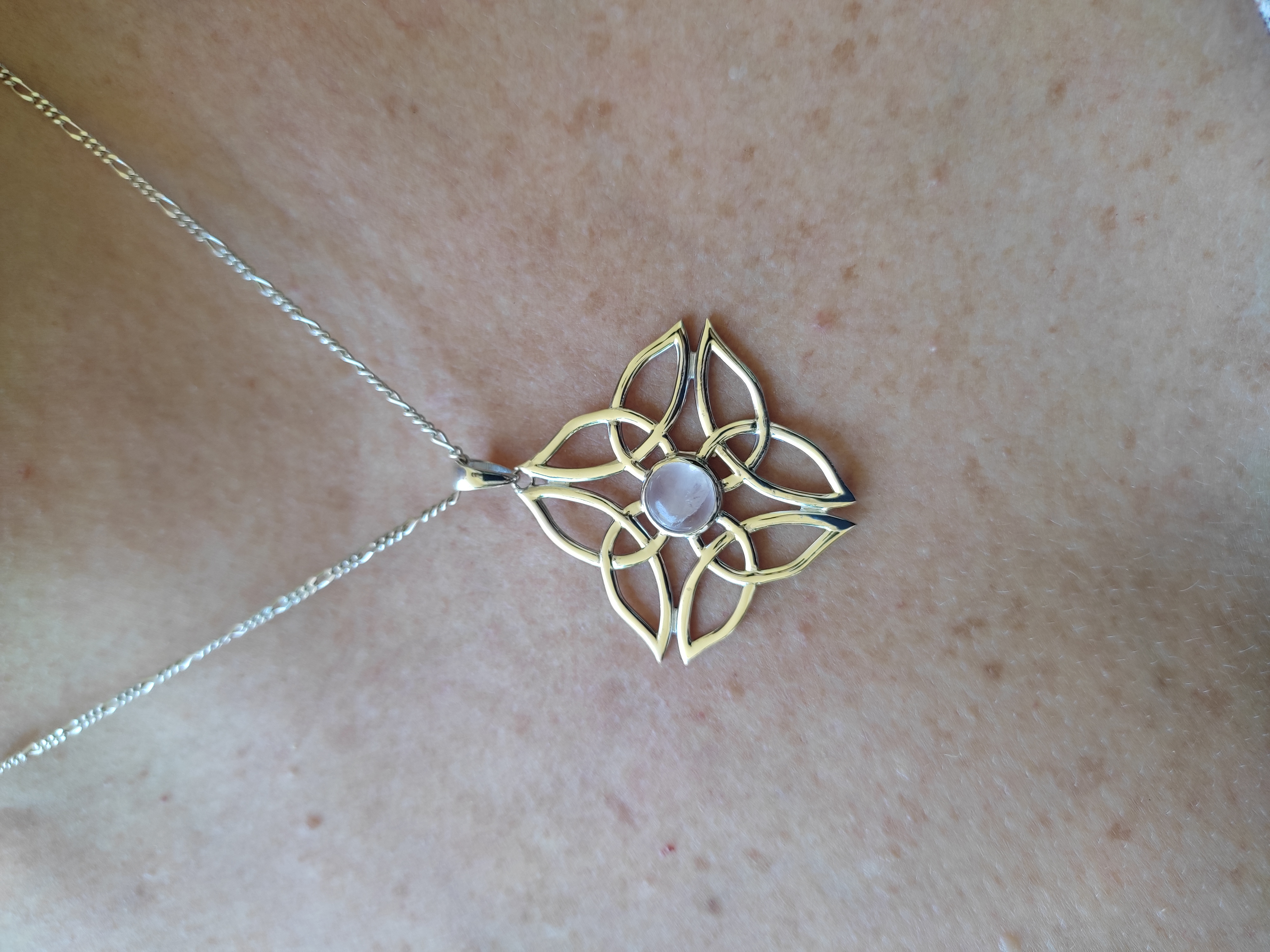 DIJE TRIQUETA CUARZO ROSADO Y TURQUESA