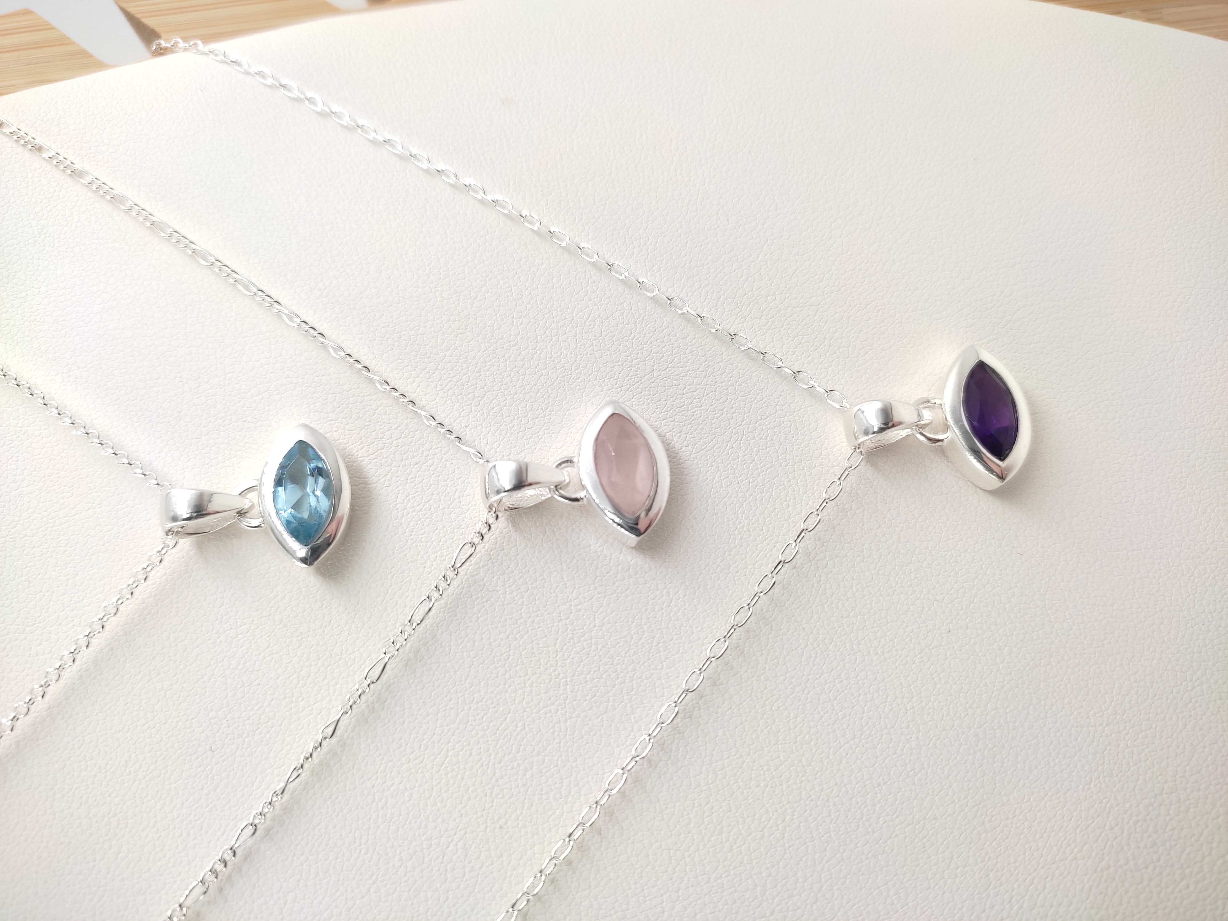 DIJES TOPACIO AZUL, AMATISTA, CUARZO ROSADO PUNTO LUZ