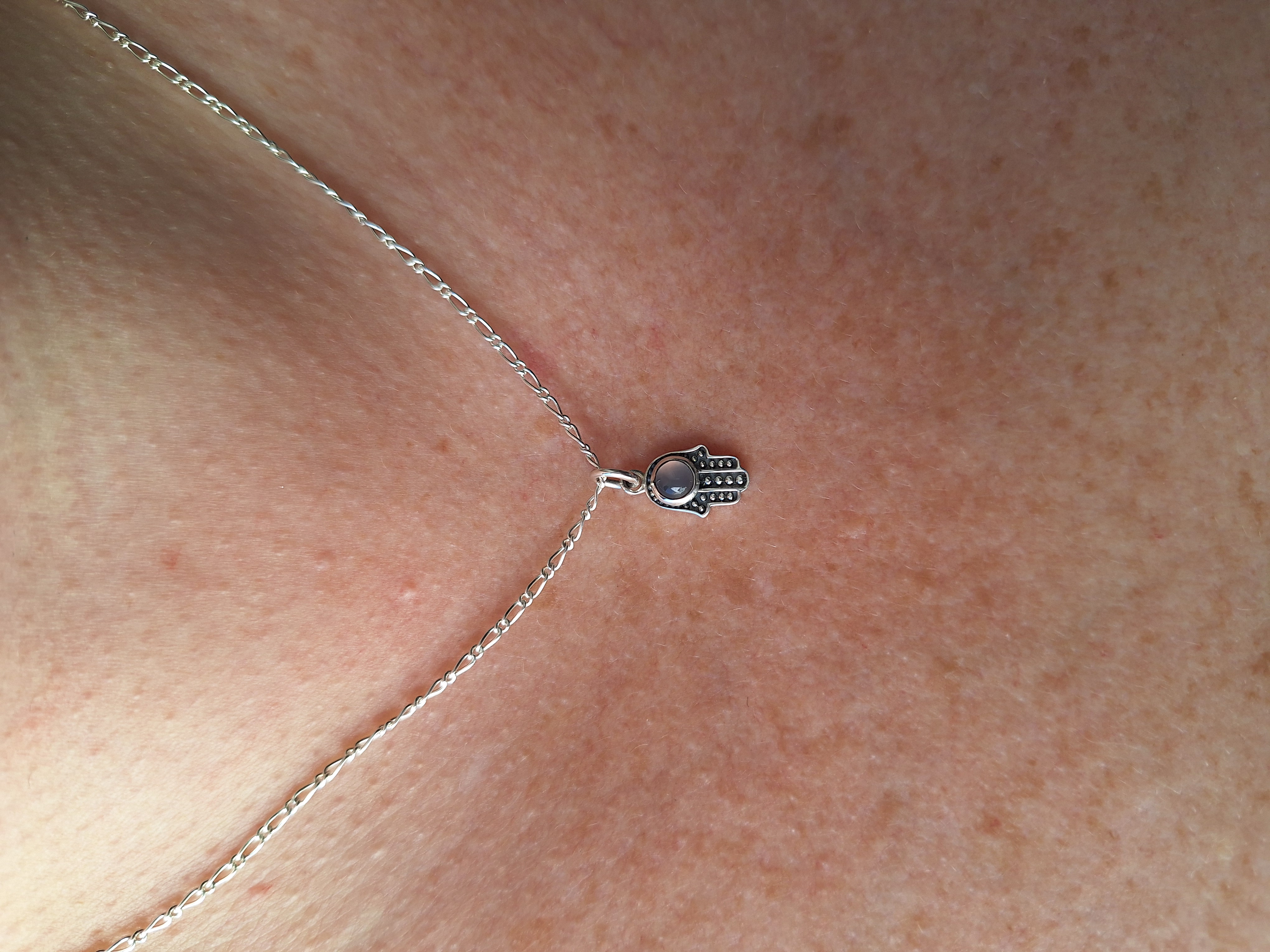 DIJE MINI MANO DE FÁTIMA CON CUARZO ROSA
