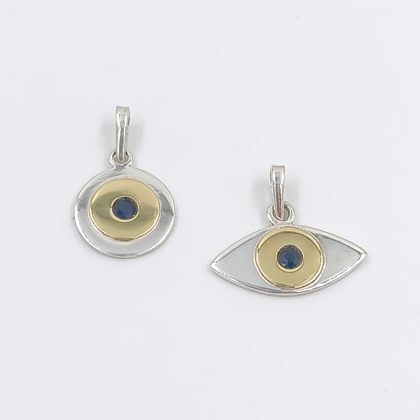 DIJE OJO TURCO REDONDO PLATA Y ORO CON ZAFIRO